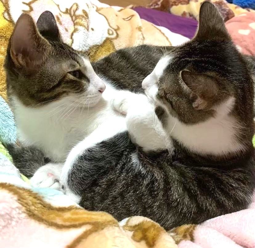 今でこそ他の猫は温かく見守ってくれていますが、きゅんくんが保護猫団体「ねころび荘」からやってきた時にはひと騒動あったんです。きゅんくんが生後3カ月、2021年6月のことでした。