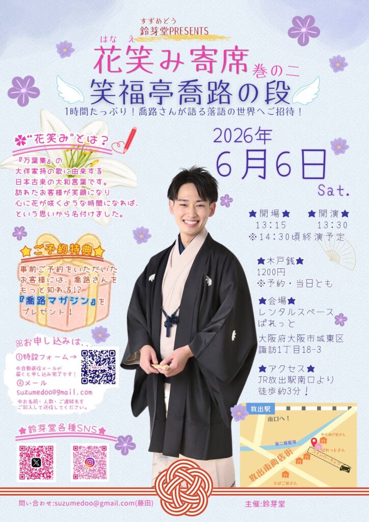 昨年10月の鈴芽堂立ち上げから独立、そして、4月の花笑み寄席の開催まで色んな方が良いご縁を繋いでくださったお陰で、無事にこの日を迎えることができました。
